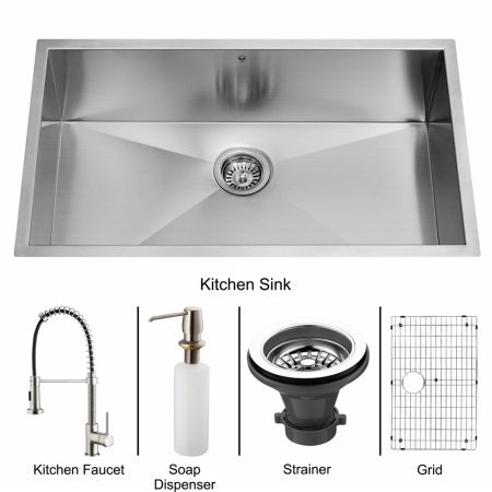 Vigo VG15076 Undermount Stainless Steel Kitchen Sink, Faucet, Grid, Strainer and Dispenser Reviews